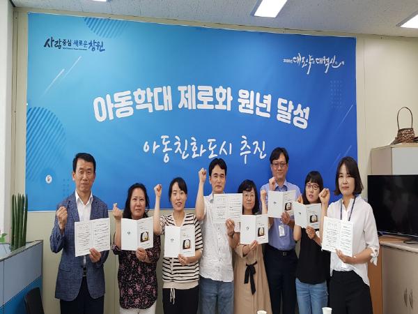 시는 올해 ‘아동학대 제로화 원년 달성’을 목표로 행정력을 집중하고 있다. 7월 1일자 부서로 발령받은 직원들에게 ‘아이를 사랑하는 우리의 다짐’이라는 업무 목표가 담긴 환영장을 전달하고, 창원시 아이들의 행복을 위해 함께 달려 가자는 각오를 다졌다.