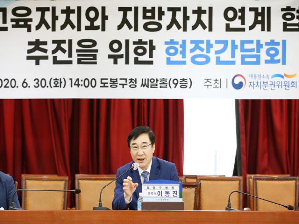 도봉구(구청장 이동진)는 지난 6월 30일 대통령소속 자치분권위원회(위원장 김순은)와 공동으로 ‘교육자치와 지방자치 연계·협력 활성화를 위한 현장 간담회’를 개최했다.