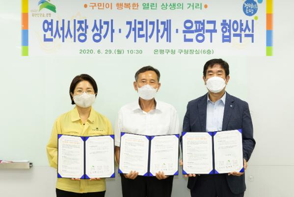 은평구(구청장 김미경)는 지난 6월 29일 성공적인 연신내 거리가게 환경개선사업을 추진하기 위해 상가와 거리가게, 은평구 ‘3자간 상생협약’을 체결했다.