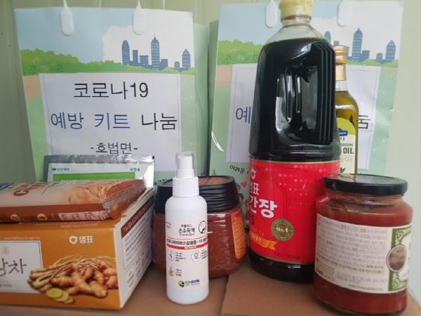 호법면지역사회보장협의체의 ‘사랑의 밑반찬 지원’ 사업이 ㈜ 샘표의 후원으로 매월 장류 등을 15명의 대상자에게 지원하고 있는데 이에 대한 사업의 연장으로 「코로나19 예방 키트 나눔」을 펼쳤다.