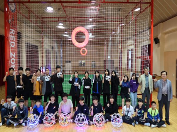 횡성군 안흥중·고등학교(교장 손영관)는 30일(화), 본관 3층에 성인 규격(14m×7m×H5m)의 드론 축구장을 개장했다고 밝혔다.