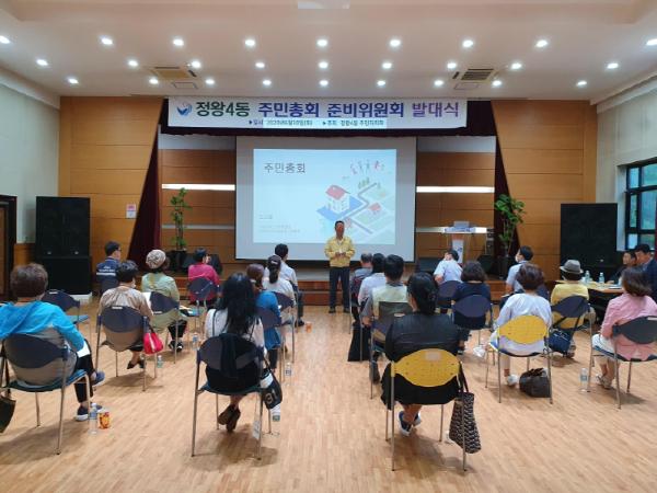 시흥시 정왕4동 주민자치회(회장 신원철)가 전 주민이 참여하는 공론의 장인 주민총회의 성공적인 개최를 위한 주민총회 준비위원회 발대식을 6월 30일 정왕4동 행정복지센터 2층 강당에서 개최했다.