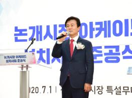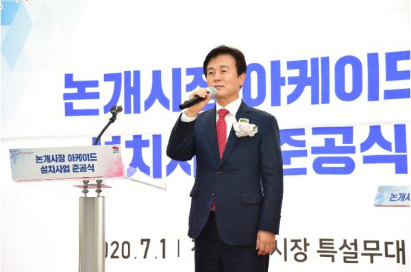논개시장 아케이드 설치사업은 2017년부터 4년간 1, 2차 구간으로 시행되고 있으며, 국비 28억 7000만원을 포함한 총 사업비 49억이 투입된 전통시장 시설현대화 사업이다.