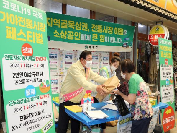 함안군은 대한민국 동행세일기간(6. 26.(금) ∼ 7. 12.(금))을 맞아 코로나19로 침체된 관내 전통시장의 경제 활성화를 위해 오는 7일까지 가야전통시장 동시세일 페스타 행사를 개최한다고 밝혔다.