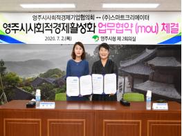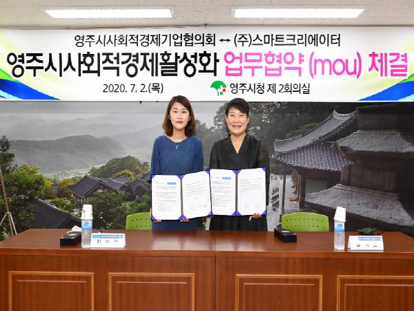 경북 영주시 사회적경제기업협의회(회장 남옥선)는 지난 2일 영주시청 제2회의실에서 경산에 소재한 청년벤처기업인 ㈜스마트크리에이터(대표 김보라)와 업무협약을 체결했다.