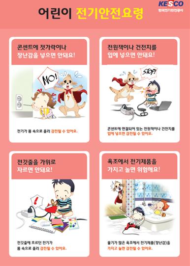 여름철 주거시설에서 발생하는 감전사고를 예방하려면 다음과 같은 안전요령을 잘 지키는 것이 무엇보다 중요하다.