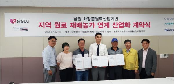 이환주 남원시장은 “이번 계약은 단순히 농가에서 화장품원료기업에 원료를 납품하는 것이 아닌 남원산 화장품원료를 발굴, 재배, 제조, 제품화로 이어지는 전 과정을 브랜드화한 차별화된 시도”라며 “우리시는 ‘파머스 시그니처’라는 원료브랜드를 시작으로 하여 남원산 화장품 브랜드화를 더욱 활성화 시키겠다”고 설명했다.