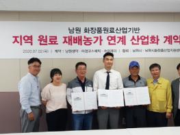 남원산 원료로 제조?생산된 화장품이 브랜드화 될 예정이어서 남원화장품원료사업의 추진동력을 키우게 됐다. 시에 따르면, 2일 남원시화장품산업지원센터(이사장 이환주)에서 원료생산시설 운영자인 ㈜수이케이와 지역재배원료생산자, 화장품책임판매사 등 10여명이 참석한 가운데 원료재배 계약식을 가졌다. 시는 이번 계약체결에 따라 남원 농가와 연계한 다양한 화장품원료생산과 원료브랜드화 사업 추진이 가능해졌다.