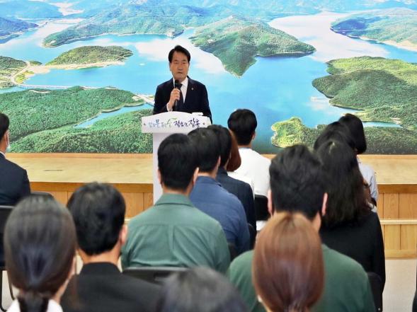 정 군수는 후반기에는 스포츠, 의향, 안전, 친환경을 중심으로 한 ‘4(four)메카 장흥’을 만들겠다고 밝혔다.