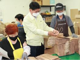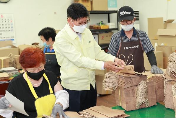 연이어, 북구시니어클럽(관장 김태성)에서 운영하는 ‘행복꿈터 칠성점 1?2작업장’(쇼핑백 제조)을 찾아 노인사회활동지원사업 참여자들과 작업체험도 하고 폭염기 어르신들의 불편사항 등을 청취하면서 참여와 소통의 열린 행정 구현을 위한 힘찬 행보를 시작했다.