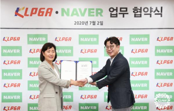 7월 2일 한국여자프로골프협회(KLPGA)가 서울시 강남구 소재의 KLPGA 사무국에서 국내 최대 검색 포털사이트이자 글로벌 ICT기업으로 거듭나고 있는 네이버㈜(대표 한성숙)와 전략적 업무협약을 약속하는 조인식을 가졌다.