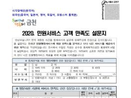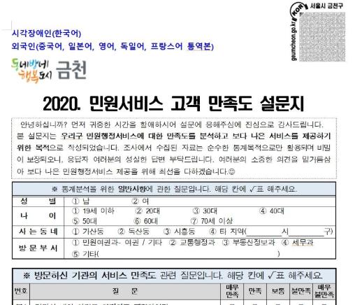 금천구(구청장 유성훈)가 ‘2020년 민원서비스 만족도 조사’에 시각장애인, 국내거주 외국인 등 사회배려대상자를 위한 ‘음성안내 서비스’를 도입했다.