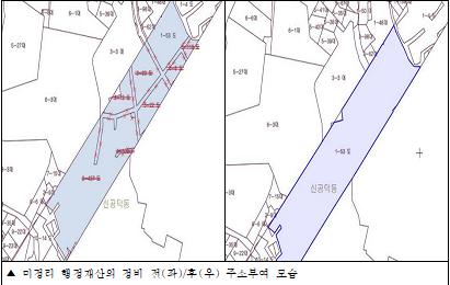 이에 구는 이번 일제정비를 통해 여러 개의 지번으로 복잡하게 부여된 공공용지 지번을 단순하게 정리해 최소한의 지번을 부여함으로써 민원인의 편리성을 증대시키는 한편 점용료 및 변상금 부과와 같은 행정재산 관리의 효율성도 높이게 됐다.