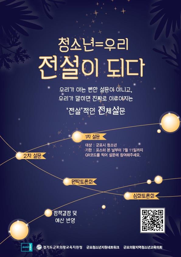 군포시 ‘청소년 전설 프로젝트’에 따르면, 청소년들의 주체적 참여와 민·관·학으로 구성된 청소년 관련 네트워크를 통해 청소년들의 실제 소망 등을 담은 의제를 발굴할 예정이다.