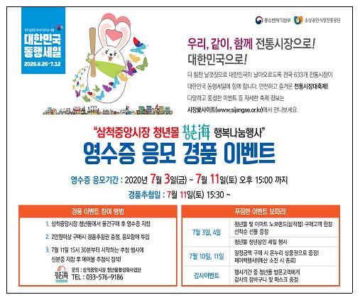 삼척중앙시장 청년몰 청춘海는 안전하고 즐거운 전통시장대축제! ‘대한민국 동행세일’에 참여한다.