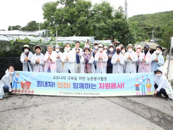 인천 미추홀구(구청장 김정식) 종합자원봉사센터는 코로나19 극복을 위한 ‘힘내자! 인천! 함께하는 자원봉사!’ 농촌봉사활동을 실시했다.