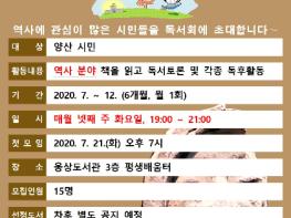 웅상도서관은 역사 분야 독서토론으로 독서문화를 장려하고 인문학적 소양을 증진시키기 위해 역사독서회 ‘역사탐방’을 운영한다.