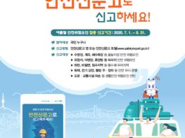 행정안전부(장관 진영)는 7월 1일부터 8월 31일까지를 여름철 안전사고 예방을 위한 ‘집중 신고기간’으로 정하고, 안전신문고를 통해 안전위험요인을 적극 신고해 줄 것을 당부하였다.