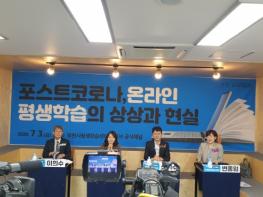 첫 발제를 맡은 정민승 교수는 비대면 문화 활성화 시대에 대비하여 오프라인 교육의 보조수단으로 머물렀던 온라인 교육을 평생학습의 창의적 적용을 역설했다. 숭례문학당 신기수 대표는 실제 사례를 통해 온라인 학습공동체 형성 아이디어를 설명했으며, 변종임 본부장은 공정하고 포용적인 학습 사회 건설과 학습소외계층의 평생학습 증진을 위한 다짐을 밝혔다.