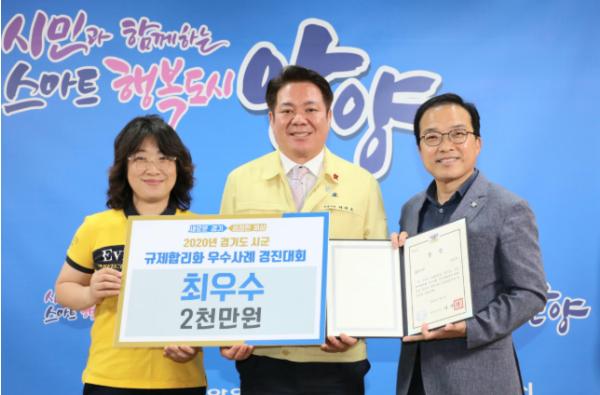 안양시는 1일 경기도청 신관 제1회의실에서 비대면으로 열린 경기도 주관 ‘ 2020년 시군 규제합리화 우수사례 경진대회(이하 “대회”)’에서 최우수상 수상과 포상금 2천만원을 받았다고 2일 밝혔다.