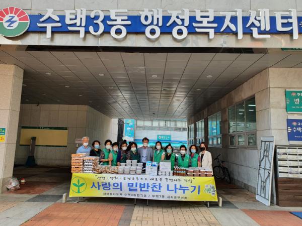 구리시(시장 안승남)수택3동 새마을지도자협의회(회장 김용겸)와 새마을부녀회(회장 함순임)는 관내 취약계층을 위한 사랑의 밑반찬을 만들어 나누는 행사를 2일 행정복지센터 1층 광장에서 가졌다.