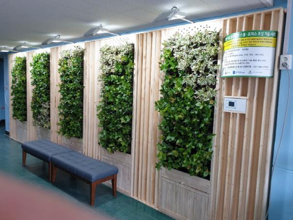 이번 사업은 농촌진흥청에서 개발한 ‘바이오월(수직정원)’을 교실 및 사무공간에 설치하여 미세먼지 및 공기 오염물질 저감으로 쾌적한 생활환경을 조성하는 것에 목적을 두고 있다.