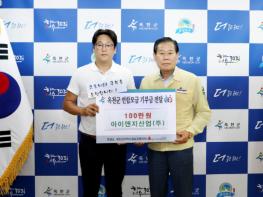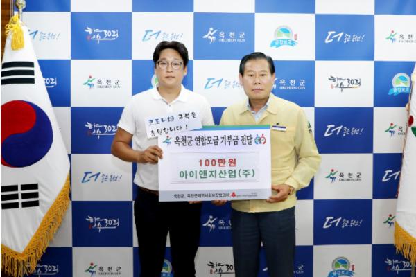 옥천군 아이앤지산업(주) 허성준 대표는 7월 3일 옥천군을 방문하여 관내 코로나19 확진자를 위한 후원금 100만원을 전달했다.