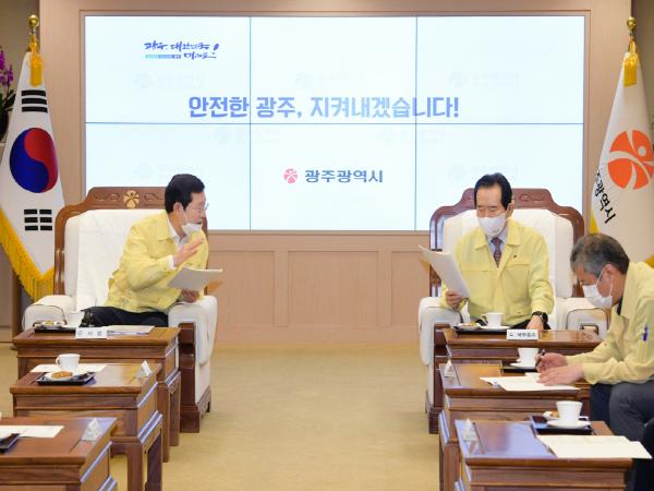 한편 이날 중대본 회의에 앞서 이용섭 시장은 정세균 총리를 따로 만나 광주의료원 설립, 정부 주도의 군공항 이전 추진, 인공지능 시범도시 조성 지원 등 지역현안을 건의했다.