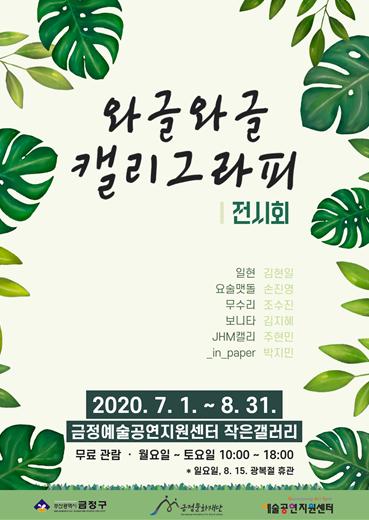 금정구(구청장 정미영) 금정문화재단은 8월 31일까지 금정예술공연지원센터 작은갤러리에서 ‘와글와글 캘리그라피 전시회’를 개최한다.
