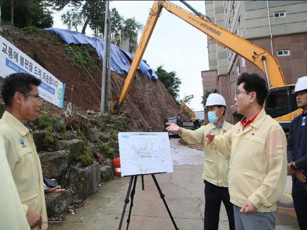 송도근 시장은 “관계 공무원 및 시공사에 우기철을 맞이하여 공사현장이 침수 또는 붕괴가 되지 않도록 안전에 만전을 기할 것”을 강조하였다. “특히 ‘노산공원2 급경사지 붕괴위험지역 정비사업’현장에 대해서는 우기로 절개면이 붕괴되지 않도록 가배수로 설치, 절개면 비닐 덮기 등 안전관리에 만전을 기하여 공사를 진행해 달라”고 당부했다.
