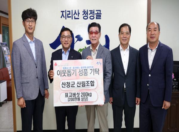 산청군 산림조합(조합장 황인수)이 6일 산청군을 찾아 어려운 이웃에 전해 달라며 표고버섯(200㎏, 200만원 상당)을 기부했다.