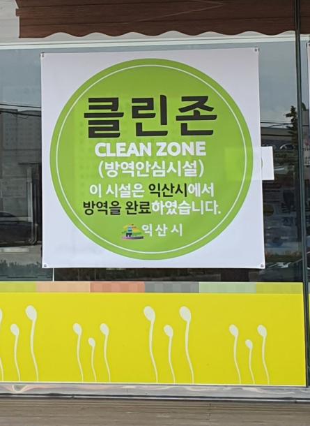 소독작업이 완료된 매장은‘클린존(방역안전시설)’현수막을 게첨하여 매장의 안전성을 시민들에게 널리 알리고 있다.