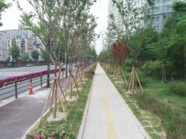 기존의 인도가 넓은 공간에 보도 블럭을 들어내고 6~7m폭으로 각종 관목(작은나무)류, 교목(큰나무)류 등 다양한 수목을 심어 다층식 녹지를 만들어 총 300m 구간에 청단풍 등 7,000주를 심어 명품 가로숲길을 조성했다.