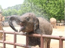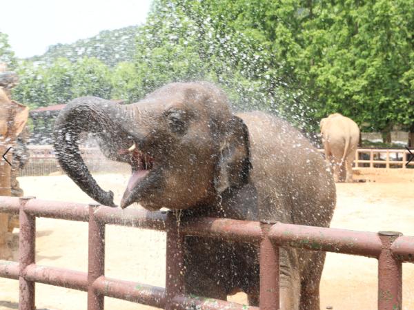 날이 더울 때는 물과 모래로 더위를 식히는 코끼리. 목욕을 좋아하는 코끼리는 비가 오는 날도 활발히 움직인다. 비를 맞거나 젖은 진흙놀이를 하며 비오는 날을 즐겁게 보낸다. 서울대공원의 코끼리 방사장에는 커다란 폰드가 있어서 수영하는 코끼리를 자주 볼 수 있다. 코끼리의 코는 약 2만개의 근육을 사용해서 세심하게 움직여진다. 어릴때부터 코를 사용하는 것은 어려운 일로, 물을 마시는 법을 배우는데 6개월정도 시간이 걸린다고 한다.