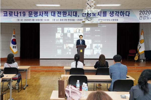 이번 교육은 ‘코로나19 문명사적 대전환시대 건강도시를 생각하다’를 주제로, ▲전문가 특별 강연 ▲코로나19 이후 건강도시가 나아갈 방향에 대한 토론 ▲직원 힐링 문화콘서트 등이 진행됐다.