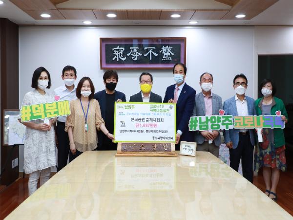 한국공인중개사협회 남양주지회(지회장 권상범)와 풍양지회(지회장 정기석) 회원들은 6일 이웃사랑 실천을 위해 모금한 기부금 1087만원을 동부희망케어센터에 전달했다.