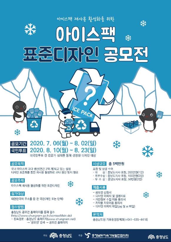 이를 위해 도는 우선 아이스팩 디자인 통일화를 추진키로 하고, 전 국민을 대상으로 ‘아이스팩 표준 디자인’ 공모를 진행한다.