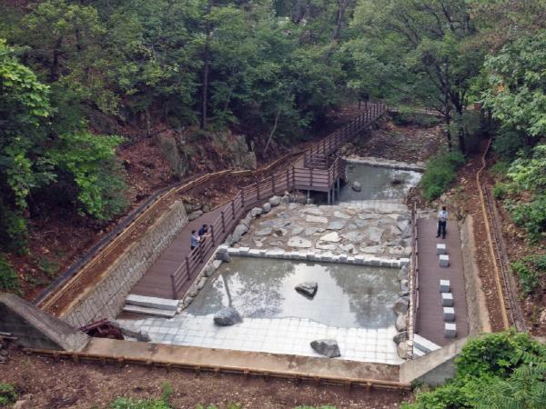 시가 사업비 2억 원을 들여 설치한 이 물놀이시설은 유아용(119㎡)과 족욕용(56㎡) 두 개소로 구성돼 있고, 데크와 휴식공간도 마련돼 있다.