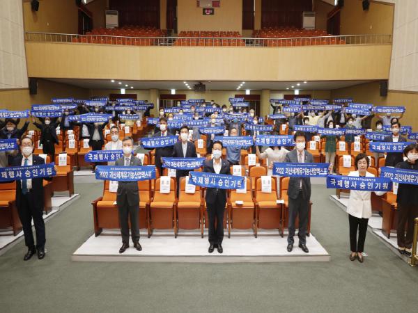 2015년 유기농엑스포 하이라이트 영상 시청으로 시작한 이날 행사는 △‘2022괴산세계유기농산업엑스포’ 홍보영상 시청 및 추진계획 보고 △국제행사 승인 기원 퍼포먼스 순으로 이어졌다.