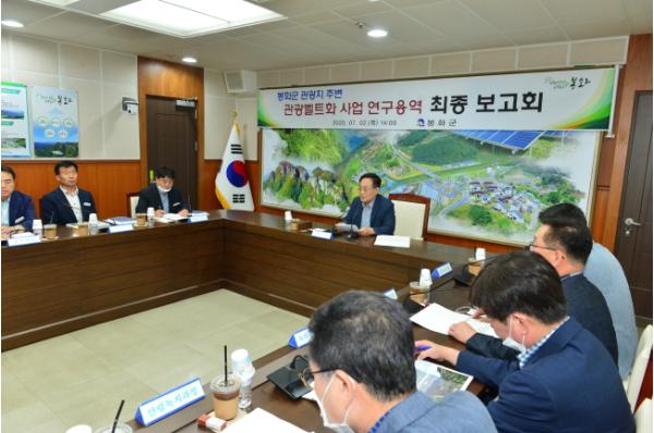 봉화군(군수 엄태항)은 7월 2일 봉화군청 소회의실에서 엄태항 봉화군수를 비롯해 조광래 부군수, 실과단소장, 실무팀 등이 참석한 가운데‘봉화군관광지주변 관광벨트화 사업 연구용역 최종보고회’를 개최했다.