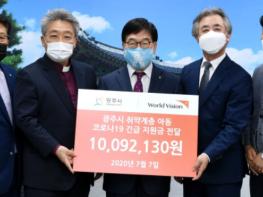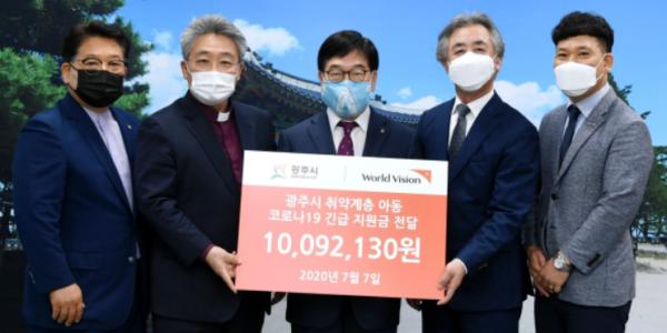 월드비전 광주지회는 7일 광주시청을 방문해 관내 취약계층 아동들을 위해 써 달라며 코로나19 긴급 구호성금 1천9만2천130원을 기탁했다.