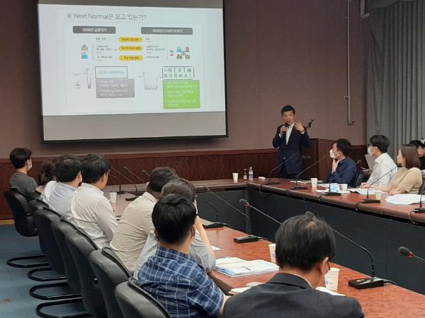 충북과학기술혁신원(원장 노근호)은 기관의 미래 역량강화를 위해 7월 7일 과기원 중회의실에서 나경환 단국대 부총장을 초청하여‘Next Normal 시대 산업기술 전략 방향’을 주제로 특강을 가졌다.