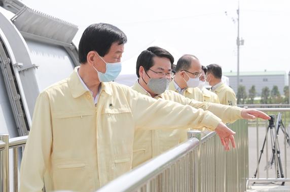 이어 펌프장 내 관제센터 하천수문 원격 개폐 시연을 통해 “하천 재해예방의 패러다임을 바꾸는 기술인 국토교통부 하천수문 스마트인프라 구축 시범사업을 전국 최초로 완료, 타지자체 확산을 앞두고 있다”고도 강조했다.