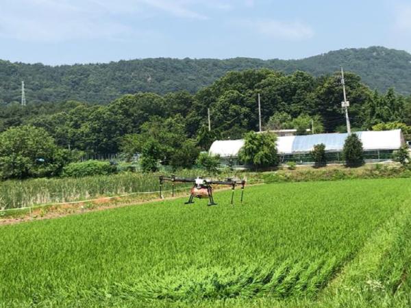 드론을 활용한 벼 병해충 방제는 방제작업이 간소하고 상공에서 바로 약제가 분사돼 약 손실이 적으며, 주변 농작물에 피해가 없어 최근 대규모 쌀 재배단지 농가들이 많이 시도하고 있다.