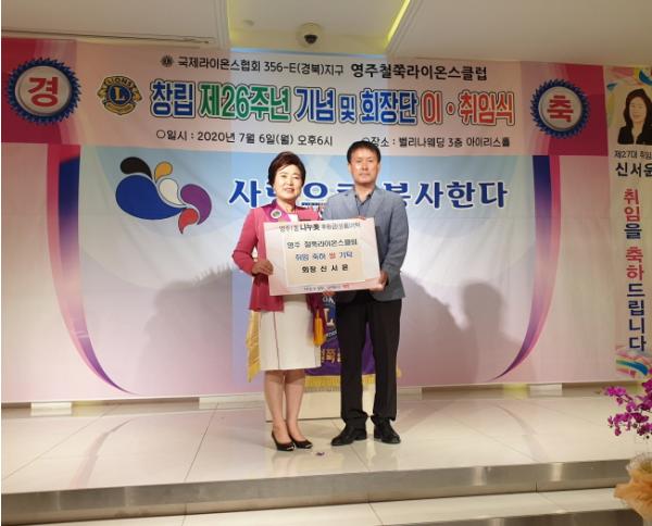 또한 영주철쭉라이온스클럽 회장 이·취임식에서 신서윤 신임회장은 관내 저소득 학생 4명에게 총 80만원의 장학금도 함께 전달했다.