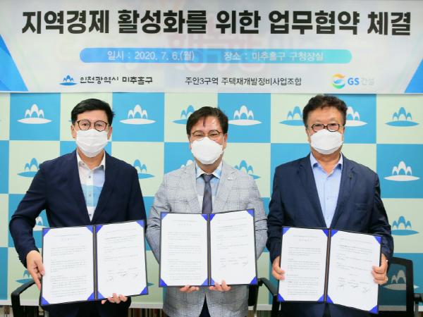 인천 미추홀구(구청장 김정식)는 지난 6일 주안3구역 재개발정비사업조합, 시공사인 GS건설과 지역경제 활성화 업무협약을 체결했다.