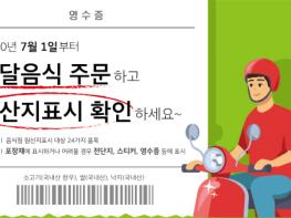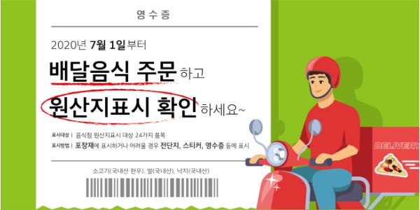 이번 조치는 2020년 7월 1일부터 시행된 「농수산물 원산지표시에 관한 법률 시행규칙」 일부 개정에 따른 것으로, 이달부터 전화 주문 등을 통해 판매·제공된 배달음식에도 원산지 표시가 의무화된다.