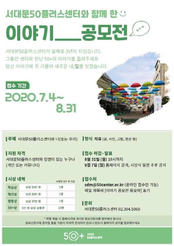 응모작은 오는 8월 31일까지 서대문50플러스센터 홈페이지에 게시된 응모신청서와 함께 센터 대표 메일로 접수해야 한다.