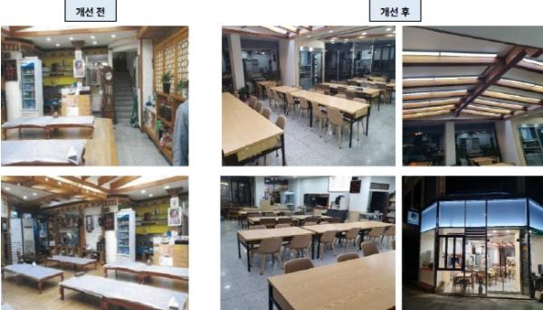 음식업소는 입식전환, 개방형주방, 화장실 보수, 간판(메뉴판) 보수 등 최대 3천만원까지 지원 가능하고, 숙박업소는 실내용 시설안내판, 홍보물 거치대, 침구류, 벽지교체(도배) 등 최대 5백만원까지 지원 가능하며, 총사업비 중 10%는 자부담하여야 한다.