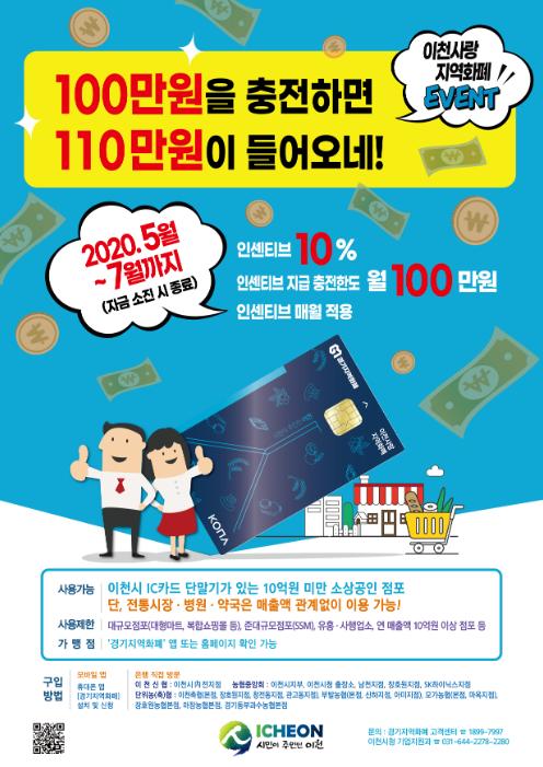 이러한 이천사랑 지역화폐 판매 실적은 올해 연초에만 계획되어 있던 10% 특별 인센티브 지급 행사가 코로나19로 위축된 경기를 회복시키기 위해 현재까지 연장 시행되고 있다는 점과 각종 재난지원금도 이천사랑 지역화폐로 지급 되어 시민들과 상인들의 큰 사랑을 받은 것으로 시는 분석하고 있다.